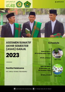 Alhamdulillah proses Asesmen Akhir Semester Ganjil 2023 telah selesai di MA Darul Hikmah Pekanbaru, baik itu tes lisan maupun tulisan sesuai dengan jadwal yang sudah ditentukan. Selanjutnya adalah proses penilaian, input nilai dan cetak rapor pada aplikasi Rapor Digital Madrasah.